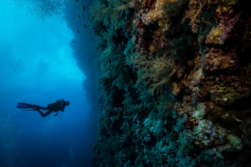 Attraverso un pontile dalla spiaggia ci si immergeva nel mare. Subito ti ritrovavi in un mare blu e guardando in giù non riuscivi a scorgere il fondale ma gli abissi profondi, che più scendevano più erano scuri. Non vi nascondo che la mia prima reazione è stata di smarrimento, soffro un pochino di vertigini.