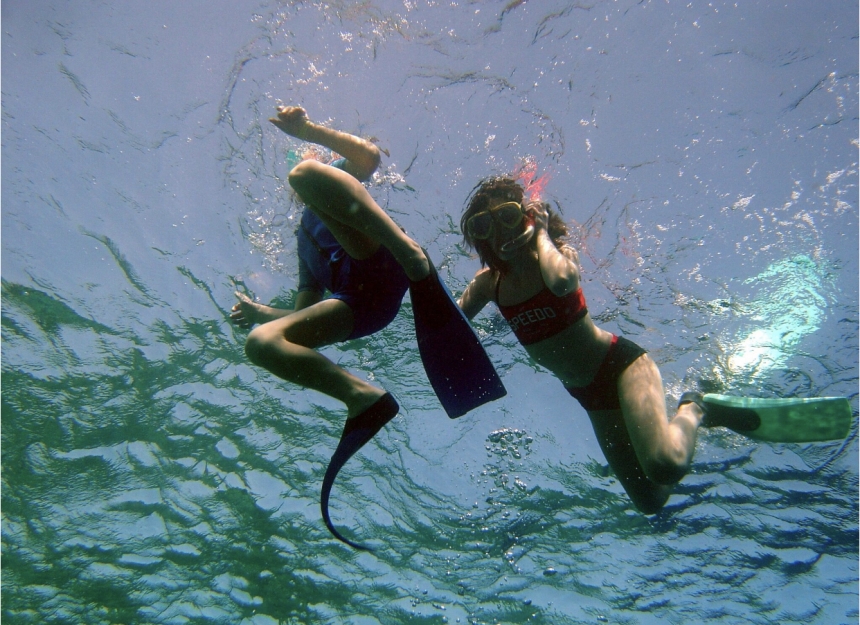 Passata l'ansia iniziale ho incominciato a notare macchie colorate che si muovevano e grazie alla maschera e il boccaglio mi sono lasciata rapire dalla bellezza della natura. Esperienza indimenticabile. Al Mar Rosso non è necessario fare immersioni, ti diverti anche solo con lo snorkeling. Nei giorni seguenti abbiamo nuotato in una baia con le tartarughe giganti e i più fortunati sono riusciti anche a vedere il dugongo... non io però!