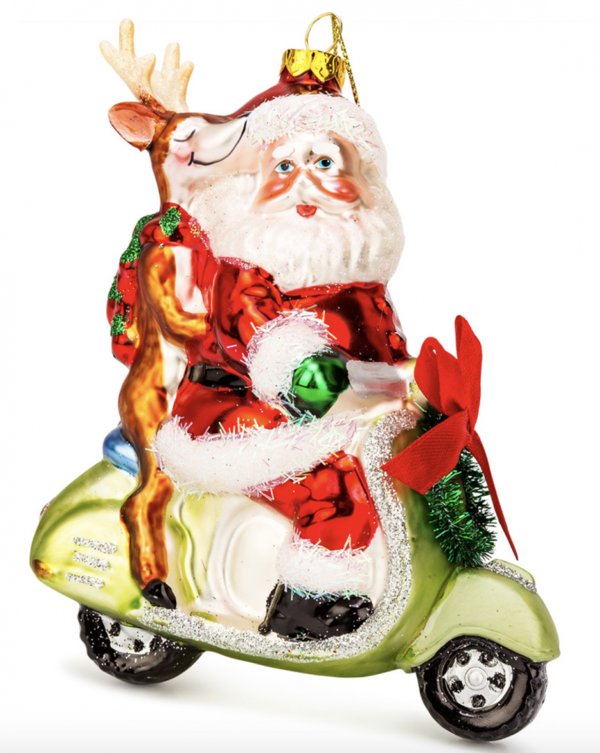 Ve l'immaginate un albero addobbato con tanti Babbi Natale spiritosi ed eccentrici? Si, mi piace molto, soprattutto il Babbo Natale seduto sulla vespa che porta in giro la renna… da morir dal ridere.
