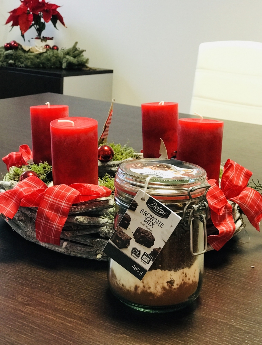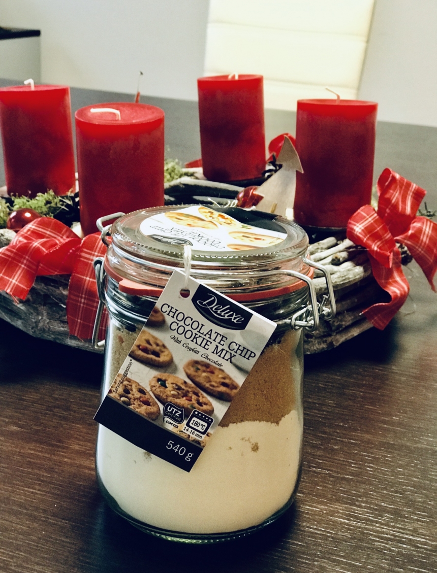 anni fa avevo ricevuto da un'amica svizzero tedesca in omaggio per Natale un vasetto contenente gli ingredienti per fare una torta: farina, cioccolato in polvere, lievito e zucchero. Con l'aggiunta di uova e burro potevi preparare un cake squisito!