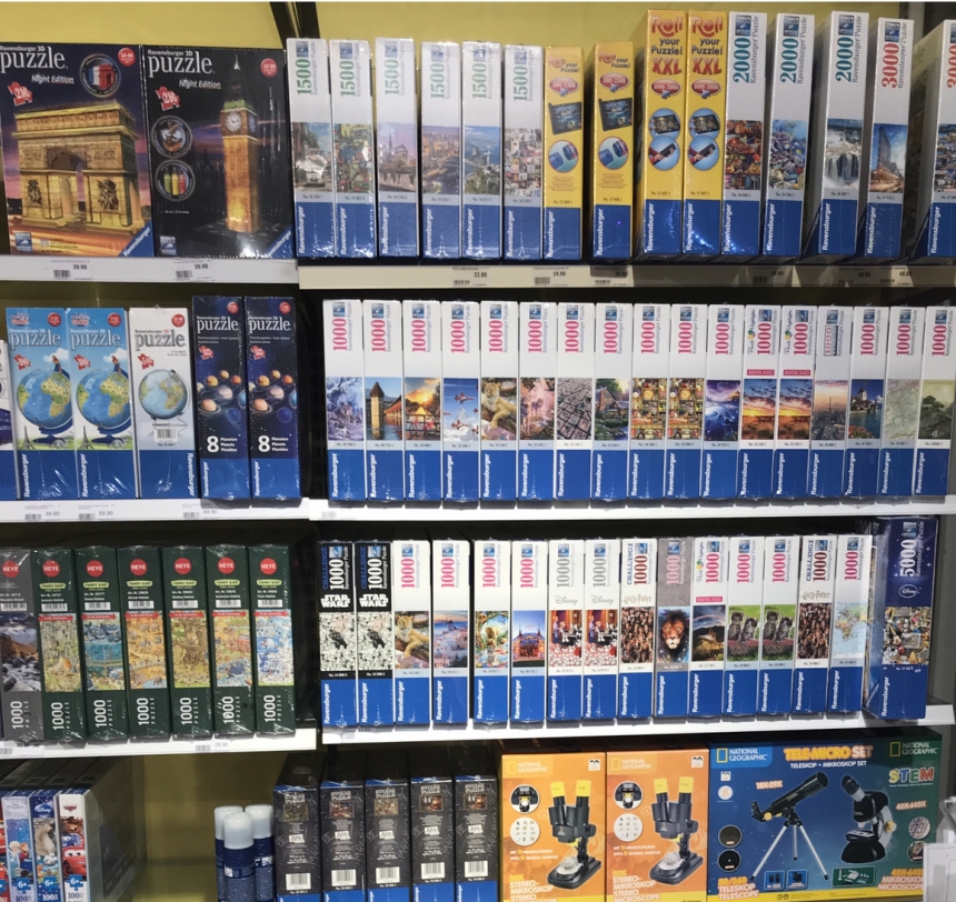 Utile è acquistare anche il tappetino per il puzzle per arrotolarlo e trasportarlo. Se vi interessa da Manor Balerna lo trovate in diverse dimensioni.