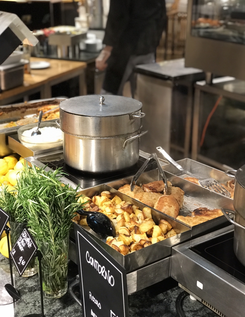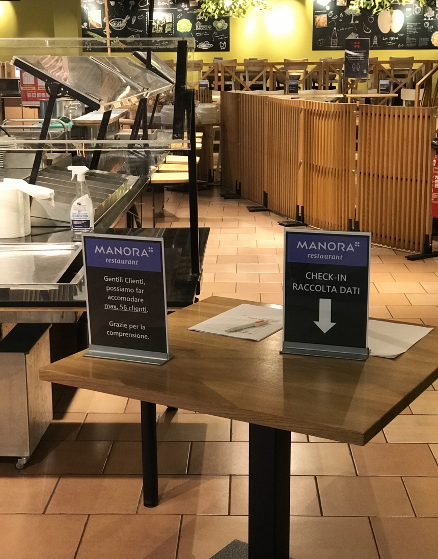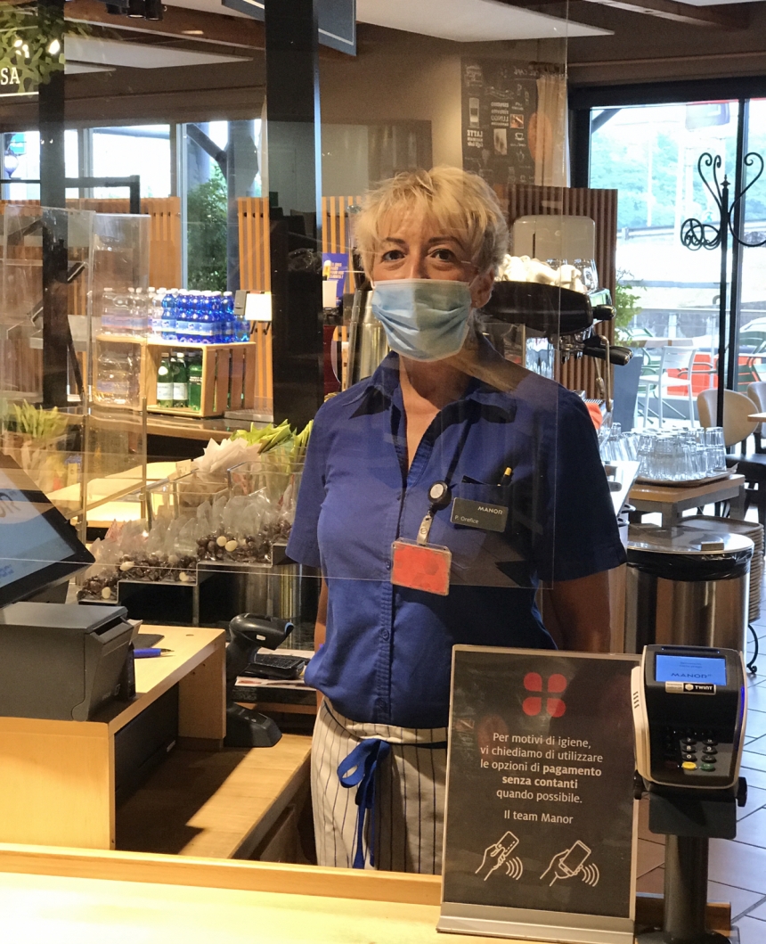 Per motivi d'igiene non ci si può più servire da soli al self service, ma il personale è a vostra disposizione per fornirvi tutto quanto, bicchiere, posate, tovagliolo e naturalmente il cibo!