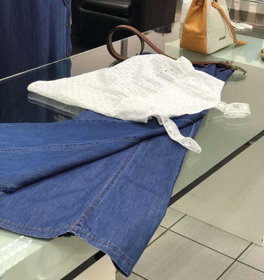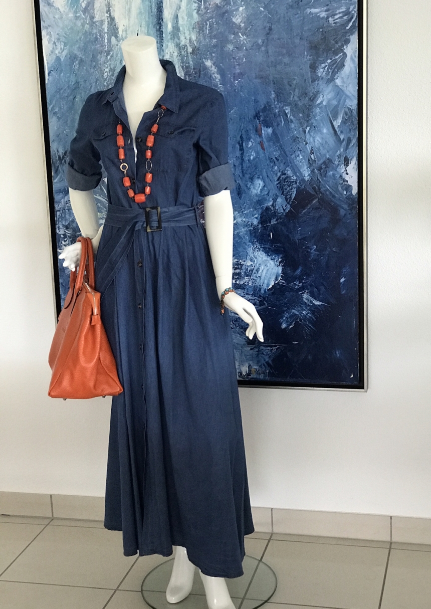 Ad esempio il denim Style, con pantaloni, maxi dress, e gonnelloni di un leggerissimo tessuto jeans in colore denim, davvero molto belli, comodi ed eleganti. Da abbinare con camicette in cotone pizzo San Gallo nei colori di gran moda quest'anno: l'intramontabile bianco, il verdone, il giallo solare e l'arancione corallo vitaminico ed energetico.