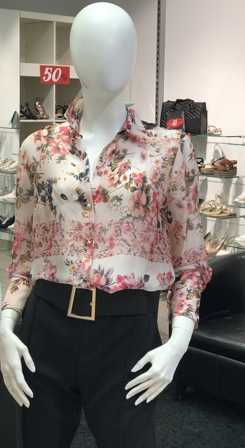 Bellissmo il Romantic Style con delicate stampe floreali suoi toni del rosa, abitino midi smanicato in seta oppure blusa sempre in seta abbinabile con pantaloni di tutti i tipi, qui con un comodo pantalone nero leggero con coulisse.