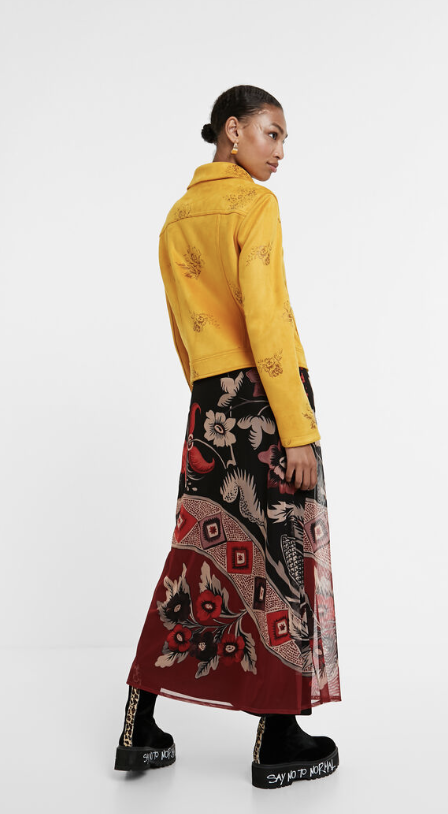 Il colore è senape, adatto all'autunno, bellissimo da indossare sia con jeans, sia con gonne lunghe sempre ovviamente di Desigual.