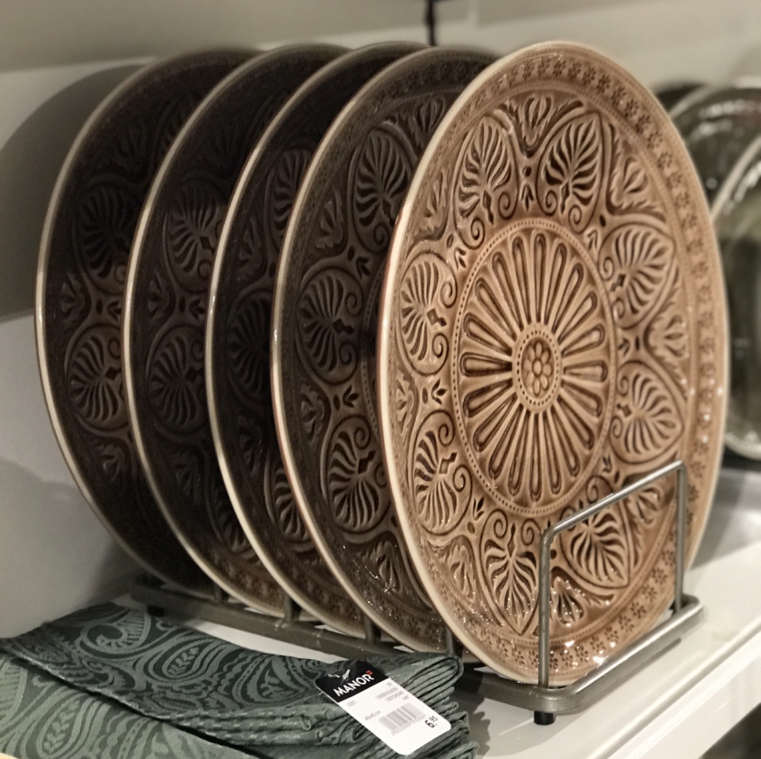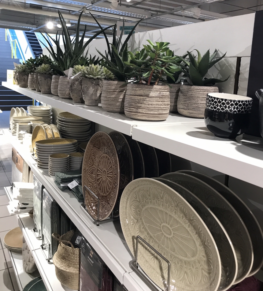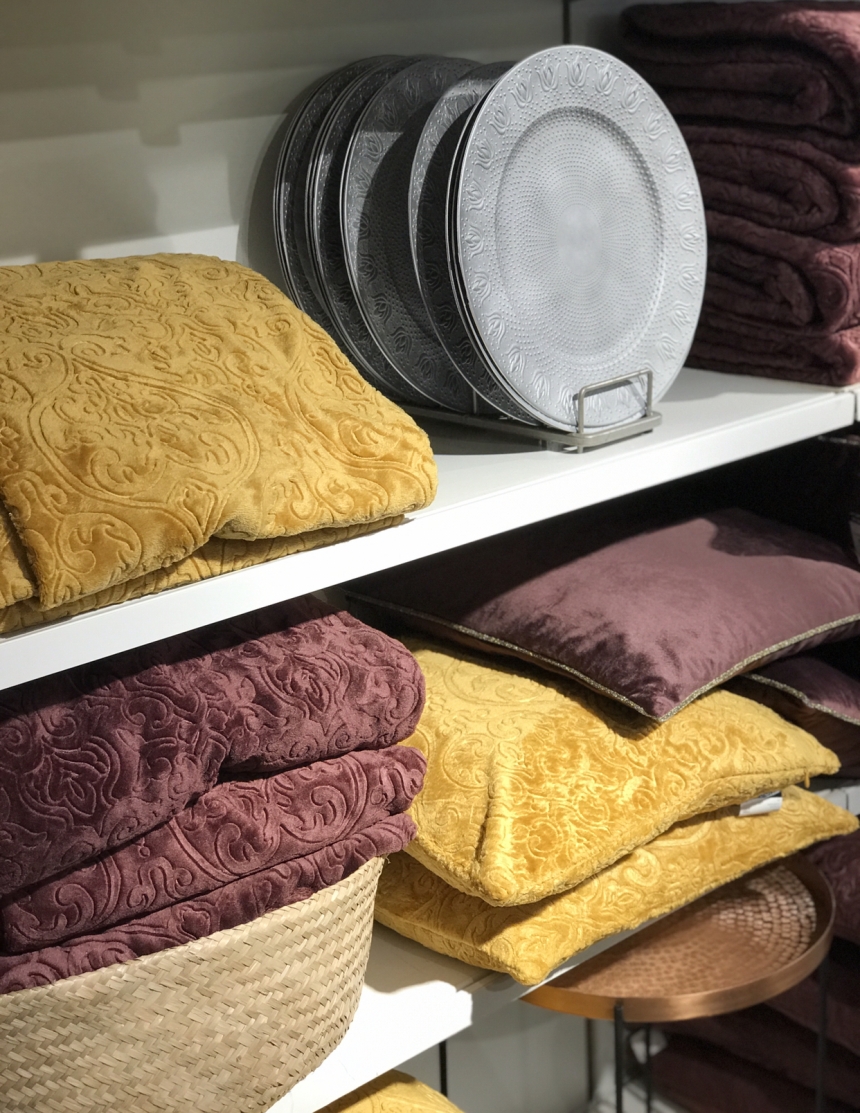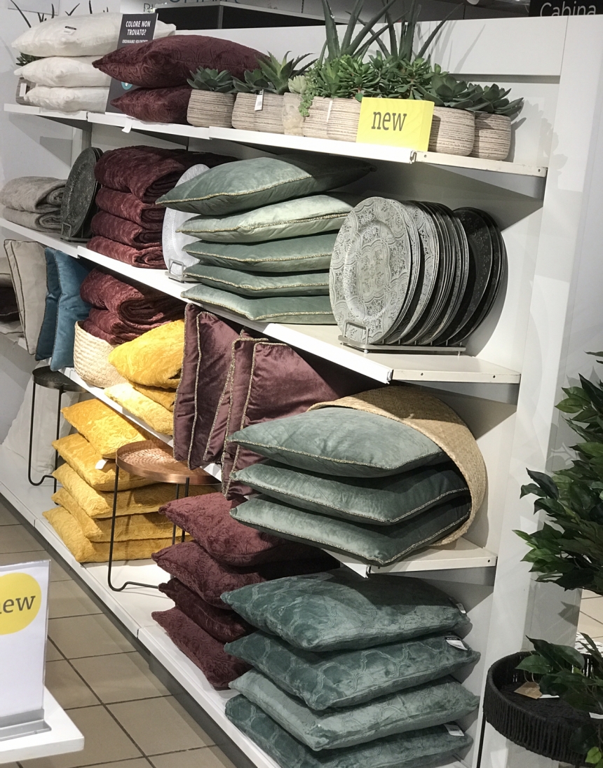 In questi giorni sono apparse delle piante grasse con il loro vaso, di piccole dimensioni, davvero spettacolari, dei cuscini con le coperte abbinate in flanella dai caldi colori ocra e bordeaux, dei sottopiatti stile antico, tovaglie stile marocchino, stoviglie colorate (ocra, rosso mattone, verde salvia e panna) e moltissimo altro ancora.