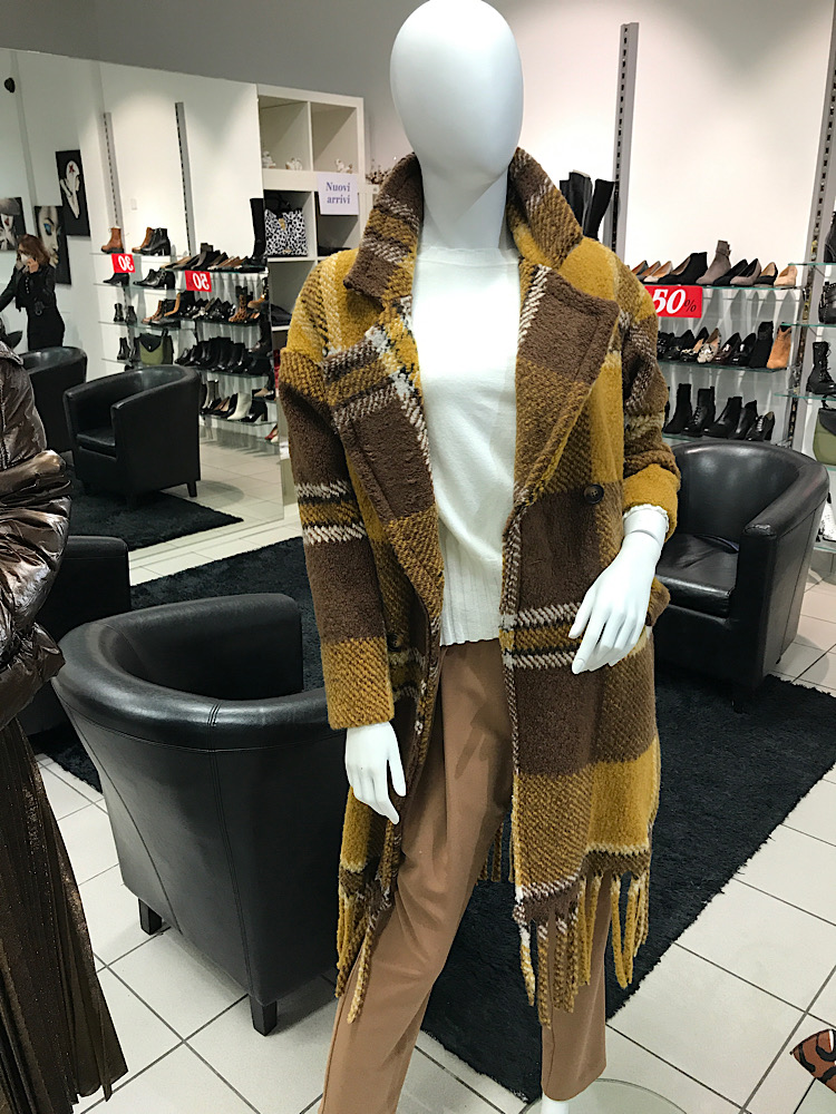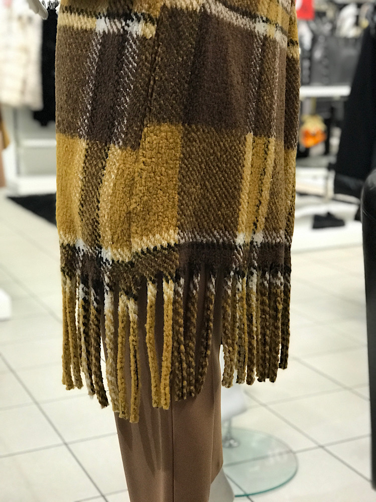 Per le freddole bellissimi piumini, comodi, pratici e soprattutto caldissimi, mentre per le più fashion un deliszioso cappotto stile tartan nei toni del marrone e punte di giallo senape con le frange: un vero must have di stagione.