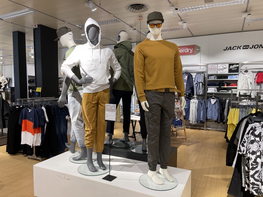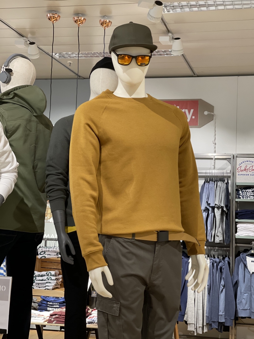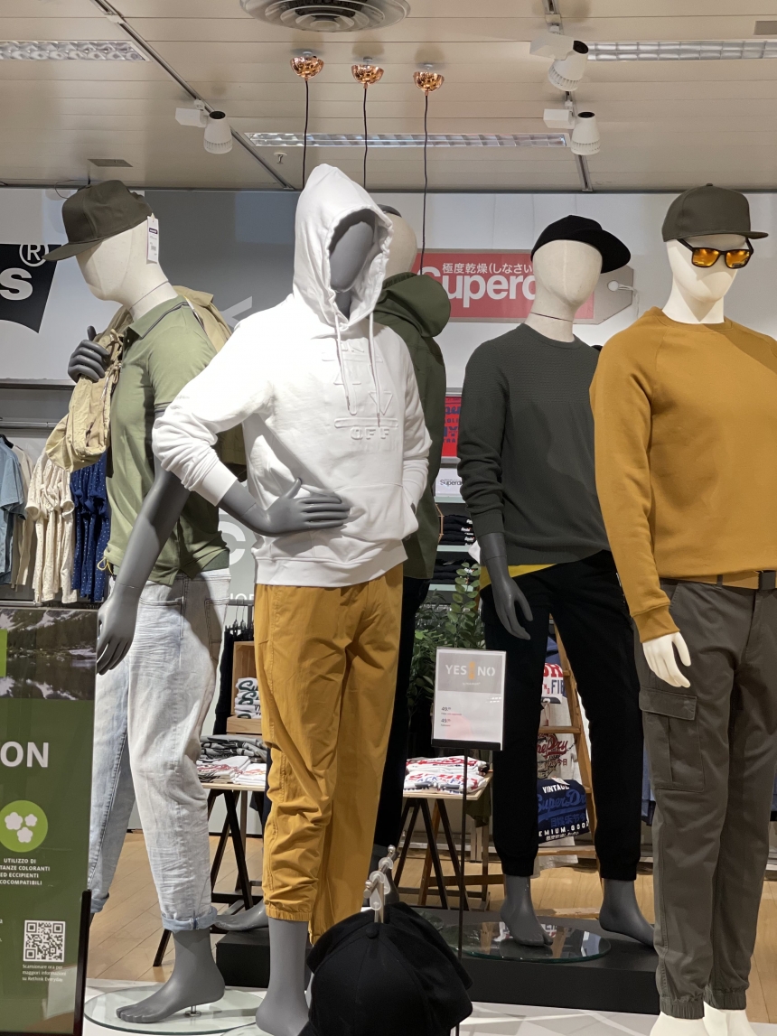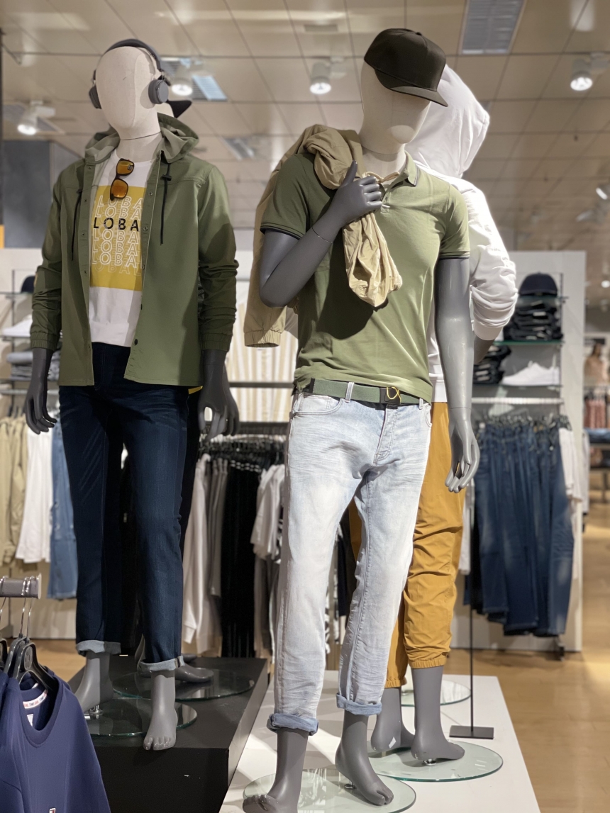 E come facciamo ad uscire di casa? Facile vestiamoci a strati. Alcuni esempi di moda uomo per la primavera si trovano guardando i manichini di Manor Balerna, reparto uomo.