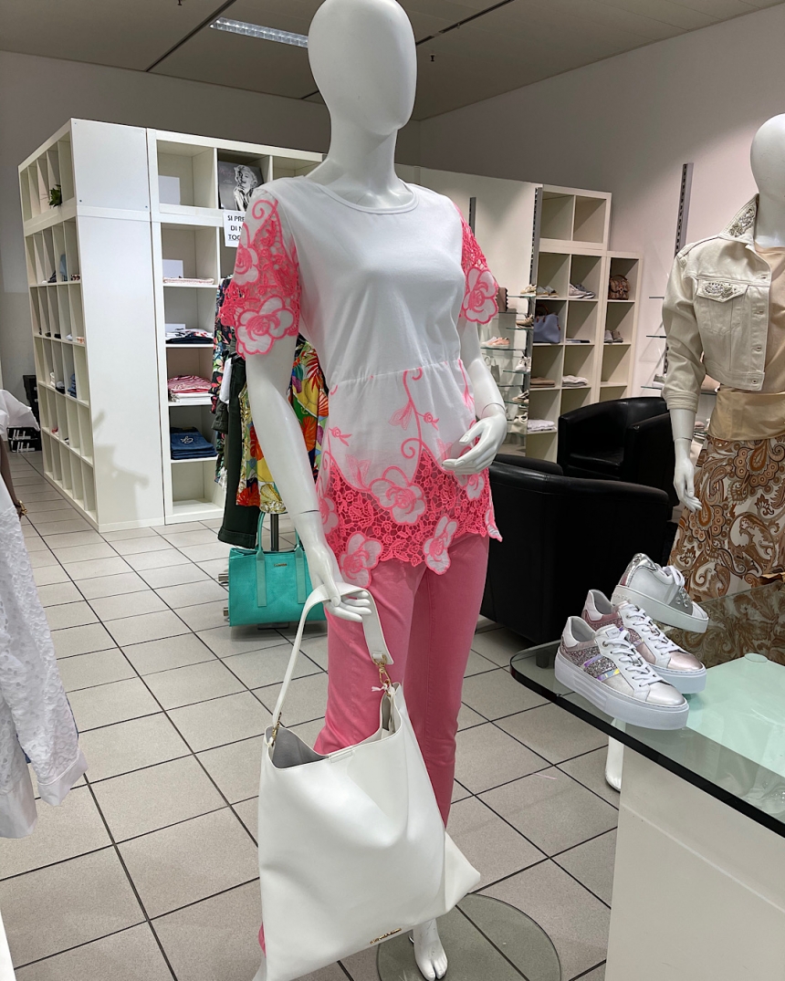 Oggi una bellissima T-Shirt di No Secrets con ricami fluo di un bel rosa; il taglio è ampio e adatto ad ogni fisico.