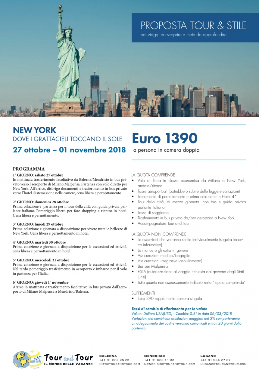 ieri stavo navigando nel sito della nostra agenzia viaggi Tour & Tour e ho visto un'interessante proposta di viaggio: New York dal 27 ottobre al 1 novembre https://www.centrobreggia.ch/negozi/tour-and-tour.html