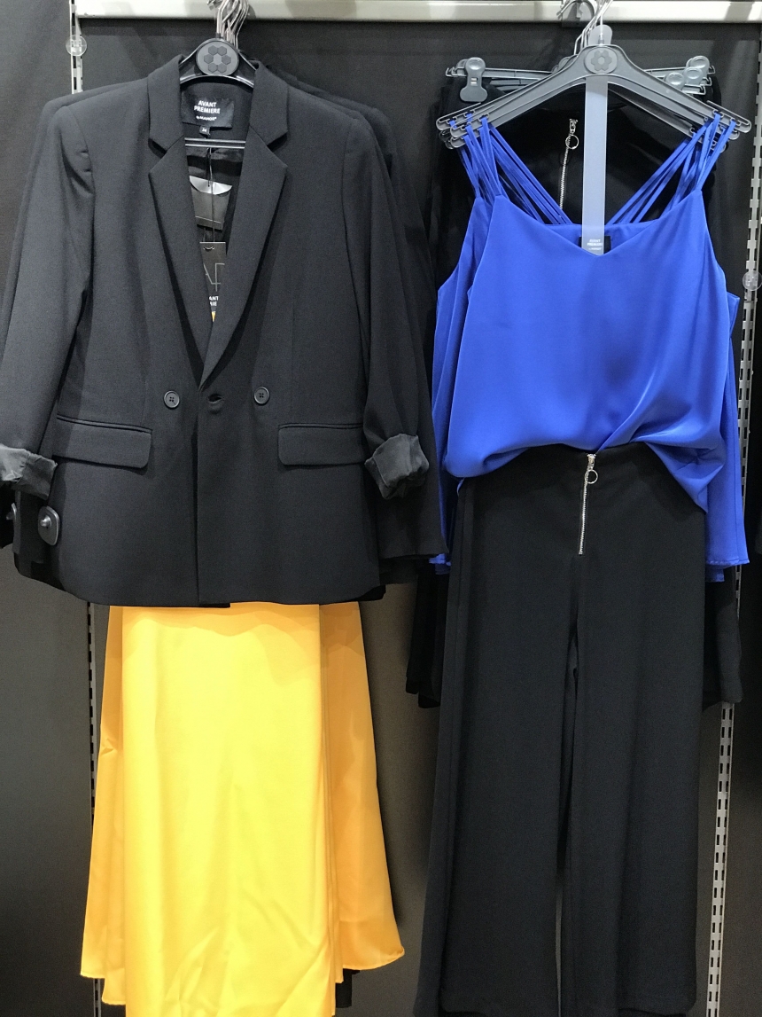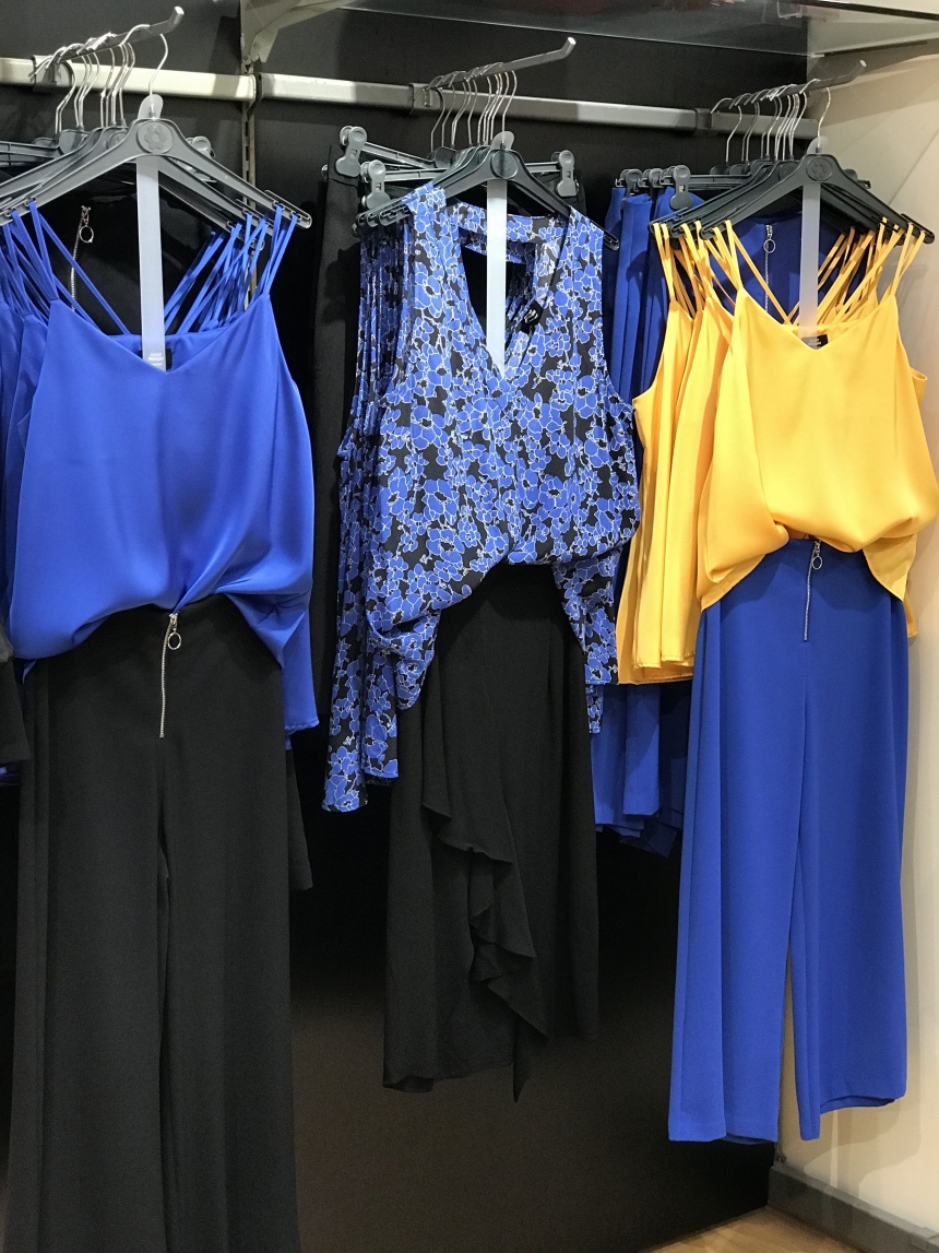 Io mi sono presa una bellissima maglietta color bluette e sono tentata di acquistare anche i pantaloni cropped con la cerneria in bella vista: assolutamente di gran moda quest'anno.