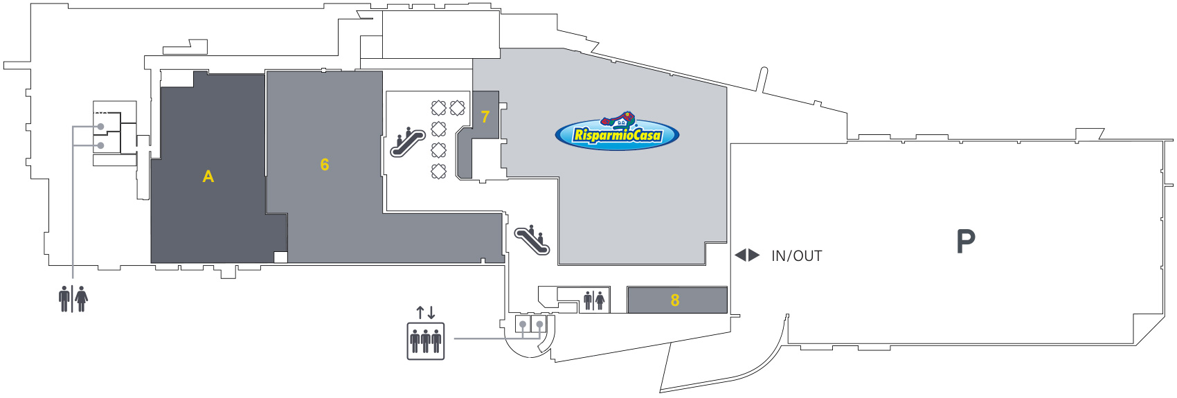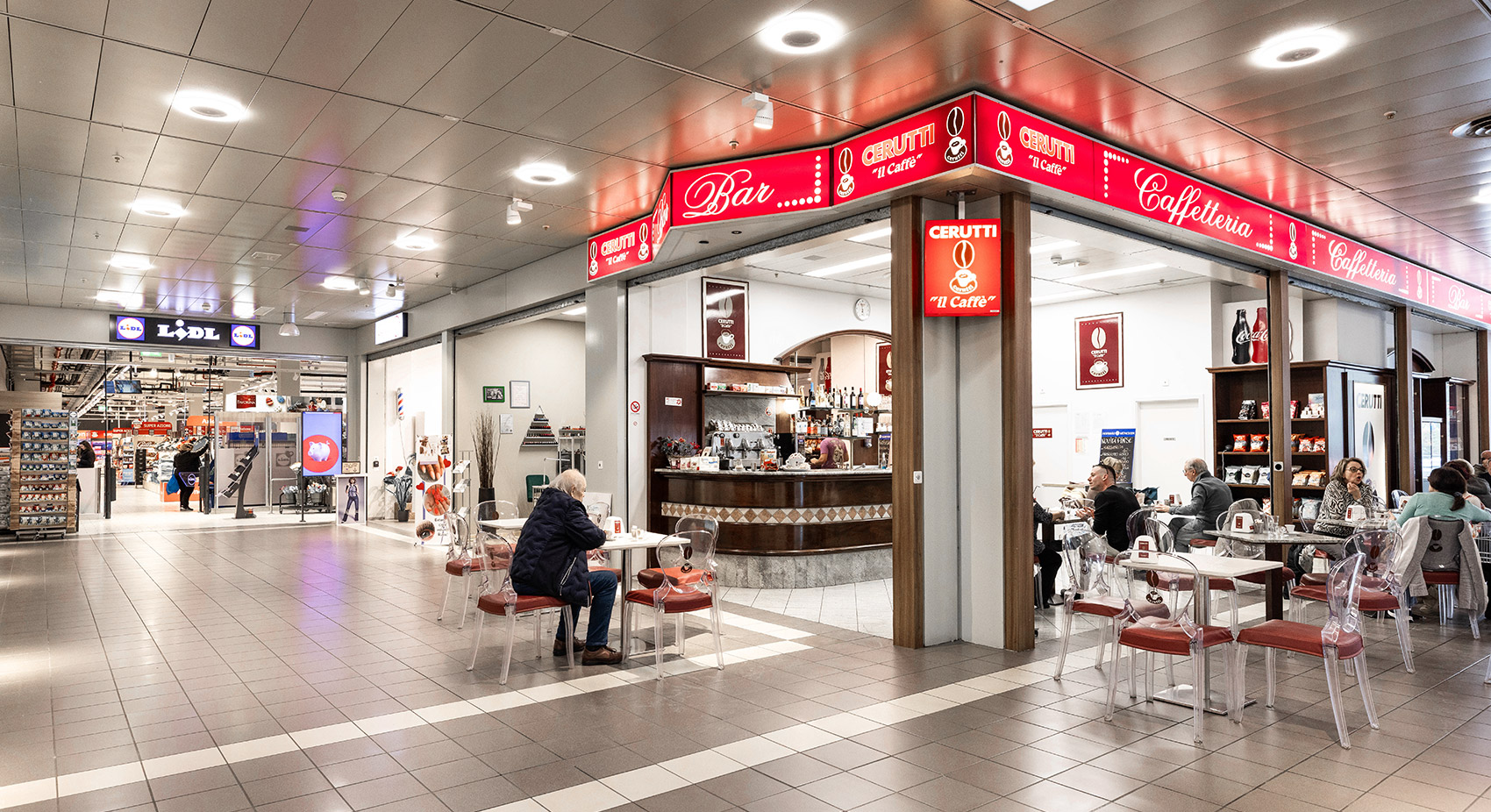 Servizi: farmacia, telefonia, lavanderia, tabaccheria, stazione di rifornimento, centro estetico, parrucchieri, ristorazione, agenzia viaggi, ATM