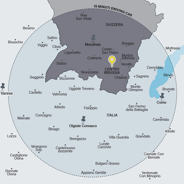 185'000 abitanti nel raggio di 15 minuti di auto dal Centro Breggia